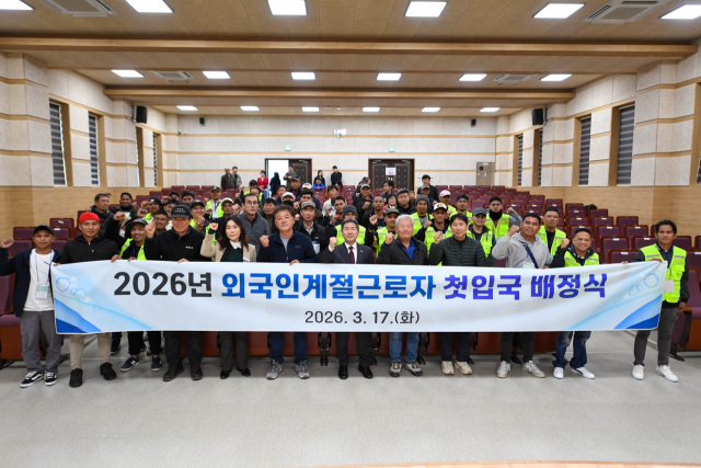 양구군은 17일 친환경농업연구센터 대강당에서 2026년 외국인 계절근로자 첫 입국 배정식을 진행했다. 이날 1차로 입국한 외국인 계절근로자 32명은 지역 농가에 배정됐다.