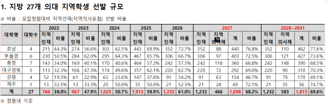 다만 지역학생 선발 확대가 곧바로 지역인재 양성으로 이어지기 위해서는 지역 고교의 진학 역량 강화가 함께 이뤄져야 한다는 지적도 나온다.