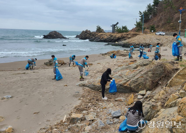삼척시가 오는 22일 ‘세계 물의 날’을 맞아 지난 16일부터 27일까지 지역 기업체와 ‘1사 1하천 가꾸기 캠페인’을 전개하고 있다. 사진은 삼표시멘트(주) 직원들이 자연정화 활동을 펼치고 있는 모습.