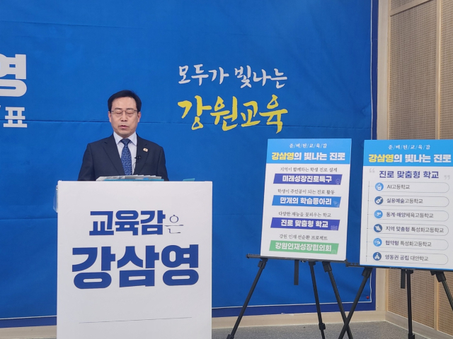 6·3강원특별자치도교육감 선거에 출마한 강삼영 예비후보가 18일 강원도교육청 브리핑룸에서 기자회견을 열고 학생들의 진로탐색을 위해 "강원인재성장협의회를 신설하겠다"고 밝혔다.