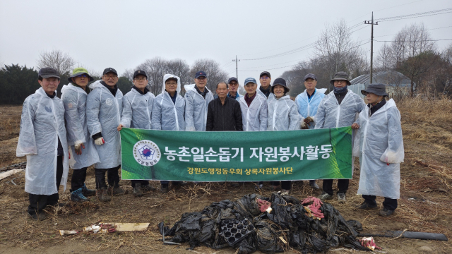 강원특별자치도 행정동우회 상록자원봉사단은 18일 춘천시 중도동의 양파 재배 농가에서 비닐 걷기 등 농촌일손돕기 봉사활동을 펼쳤다.