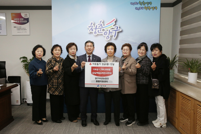 양구여성농업인종합지원센터(센터장:이현주)는 18일 양구군청을 방문해 이웃돕기 성금 176만4,000원을 양구군에 전달했다.