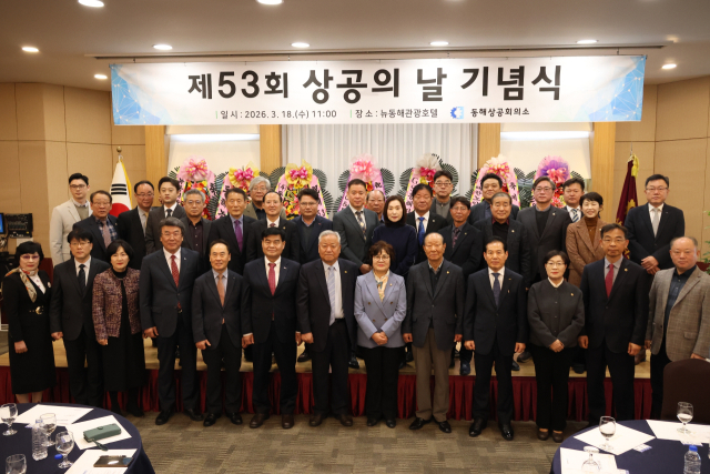 【동해】동해상공회의소(회장:김규태)는 18일 뉴동해관광호텔에서 '제53회 상공의 날' 기념식을 열고 지역경제 발전에 기여한 유공자 12명에게 표창을 수여했다.