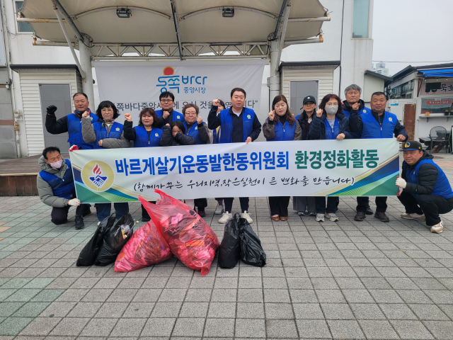 바르게살기운동 발한동위원회(위원장:이준영)는 지난 15일 묵호역 인근 발한동 일원에서 환경정화활동을 실시했다.