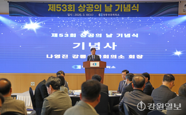 ‘제53회 상공의 날 기념식’이 18일 강릉라카이샌드파인 한송홀에서 강릉상공회의소(회장: 나영진) 주관으로 김상영 강릉시 부시장, 최익순 강릉시의장, 손창환 도 제2청사 글로벌본부장, 김일도 강릉세무서장, 문세원 고용노동부 강릉지청장, 강환구 한국은행 강릉본부장, 최덕용 중소벤처기업부 강원영동사무소장, 조병훈 중소벤처기업진흥공단 강원영동지부장과 지역 상공인 등이 참석한 가운데 열렸다. 강릉=권태명기자