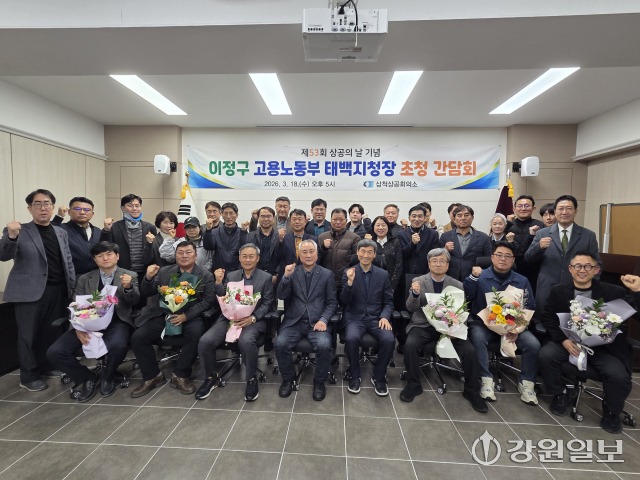 삼척상공회의소(회장:정희수)는 지난 18일 오후 5시 삼척상공회의소 회의실에서 제53회 상공의 날을 기념해 기업인들을 포상하고 이정구 고용노동부 태백지청장과 간담회를 가졌다.