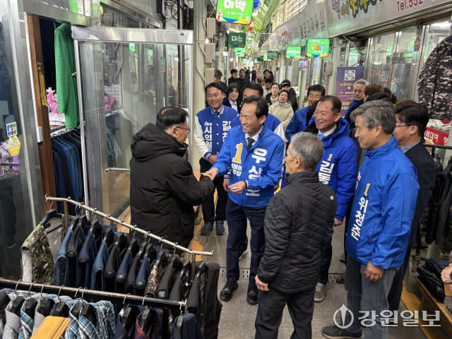 더불어민주당 강원지사 우상호 예비후보는 19일 태백 황지자유시장을 방문, 상인들과 만나 인사를 나누며 지지를 호소했다. 이후 우 예비후보는 국내 최초 주민참여·이익공유형으로 운영 중인 가덕산풍력발전단지를 찾아 운행 현황과 내년께 추진하는 3단계 사업 계획 등에 대한 설명을 들었다.