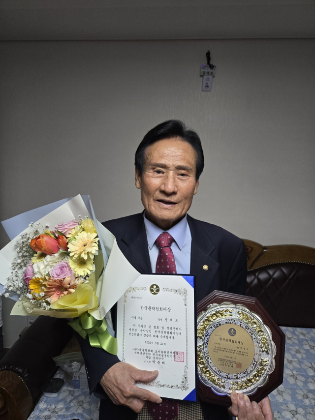 장세호 전 속초시 지방행정동우회장(수필가)은 지난 21일 한국문학협회 명성문화예술센터에서 열린 한국문학협회 선정, 수필부문 대상을 수상했다.