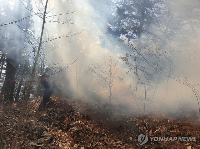 지난달 21일 오후 9시 14분께 함양군 마천면 창원리 일원에서 발생한 산불은 강풍을 타고 번지며 진화에 어려움을 겪었다.