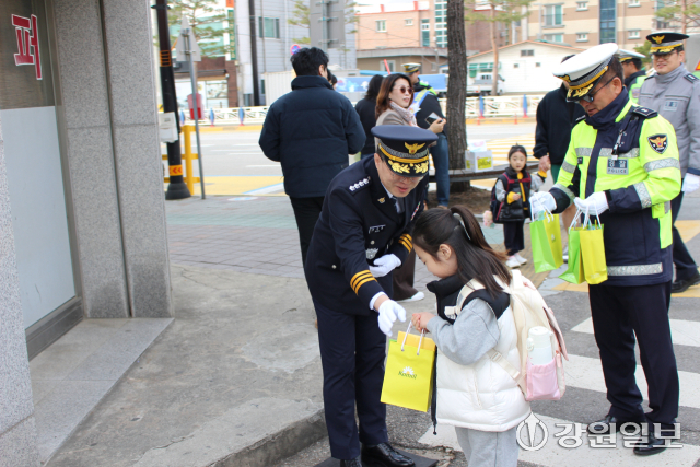 삼척경찰서(서장:전석준)와 교육지원청, 시청, 모범운전자 삼척지회는 23일 삼척초교와 삼척여고 앞에서 교통안전문화 개선 및 교통사고 예방을 위한 캠페인을 전개했다.