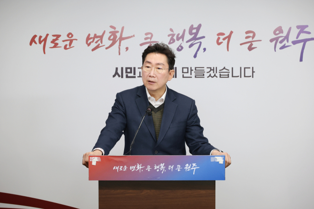 원강수 원주시장은 23일 원주시청에서 브리핑을 통해 대도시 특례 지위 확보를 위한 단·중·장기 전략을 공개했다. 이와 함께 주민등록 인구 50만명을 기준으로 하는 대도시 특례 제도의 구조적 한계를 지적하면서 정부에 제도 개선을 제안했다.