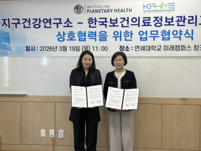 연세대 미래캠퍼스 지구건강연구소(소장:노진원 교수)는 한국보건의료정보관리교육평가원과 최근 대학에서 협력을 위한 협약을 했다.