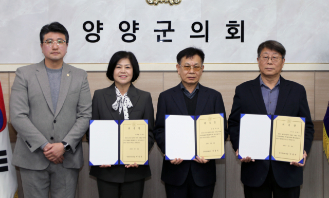 양양군의회(의장:이종석)는 23일 의장실에서 2025년도 세입·세출 결산검사위원으로 이명숙 부의장, 최진범 전 군 기획감사실장, 윤창수 전 세무회계과장을 위촉하고 위촉장을 전달했다.