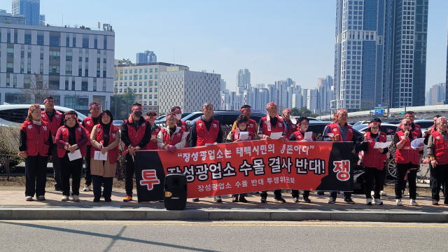 【태백】장성광업소 수몰 반대 투쟁위원회가 23일 세종 산업통상자원부 청사 앞에서 지하갱도 수몰 반대 집회를 열고 수몰 계획의 극각 철회와 국가 차원의 보존 대책 마련을 촉구했다.
