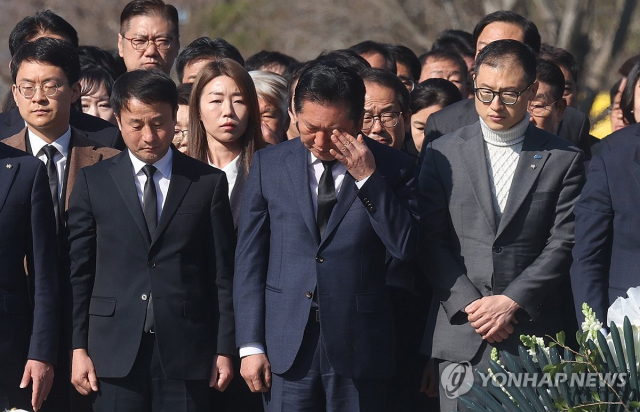 최고위에 앞서 진행된 노 전 대통령 묘역 참배에는 한병도 원내대표 및 최고위원 등 당 지도부, 경남지사 후보로 단수 공천된 김경수 전 지사 등도 함께했다. 헌화와 분향을 한 정 대표는 감정이 북받치는 듯 고개를 숙이고 눈물을 훔치는 모습도 보였다.