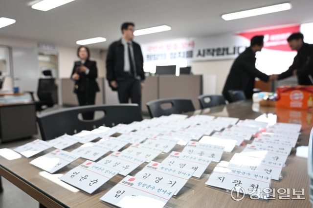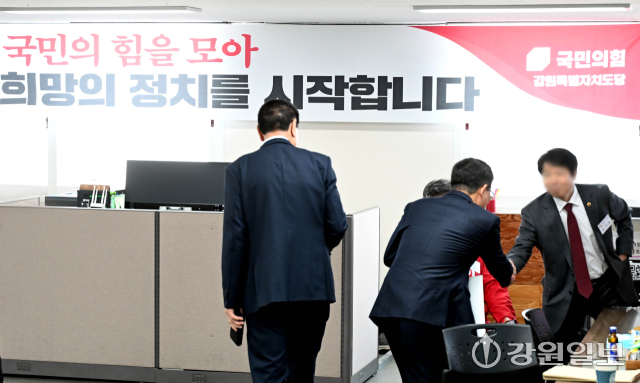 23일 국민의힘 강원자치도당에서 열린 18개 시·군 기초단체장 공천 후보자 면접을 앞두고 후보자들이 대기하고 있다.