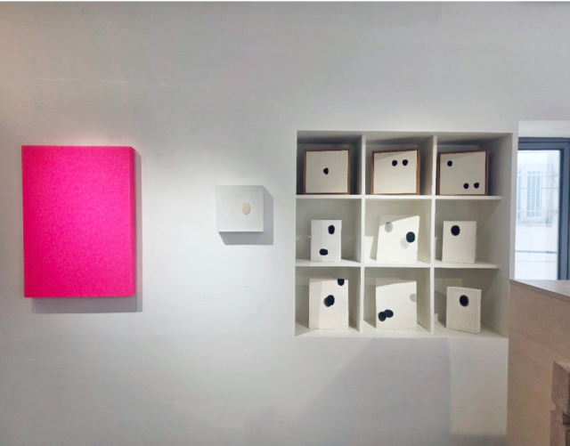 유 작가는 이번 전시에서 순수 조형 언어인 ‘점(Dot)’을 매개로 한 깊이 있는 추상 작업을 선보인다. 그의 작품은 자연의 외형을 재현하는 대신 생동하는 생명력과 우주의 질서를 작가의 수행적인 호흡으로 형상화한 결과물이라고 할 수 있다. ‘숲(Forest)’을 주제로 자연의 순환과 생명의 근원을 탐구해 온 유 작가는 붓으로 그리거나 손으로 직접 찍어내고, 때로는 수를 놓은 수많은 점들을 캔버스에 구현한다. 이러한 수많은 점의 군집을 통해 자연을 이루는 생명 입자와 우주 공간을 한 편의 시처럼 펼쳐 보인다.