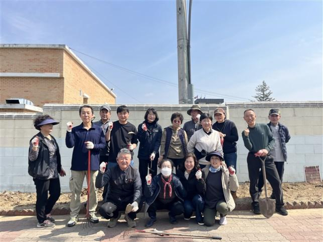 일산동통장협의회(회장:이태옥)는 최근 학성중 담벼락 일대에 계절꽃을 심었다.