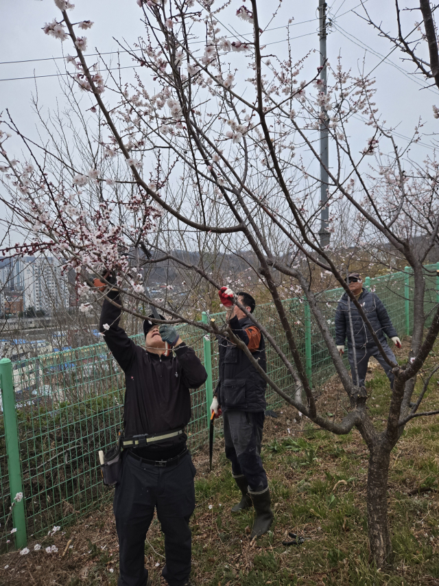 발한동주민자치위원회(위원장:오봉은)는 지난 22일 동문산 매실밭 가지치기 봉사활동을 실시했으며, 수확한 매실은 매년 취약계층에 지원하고 있다.