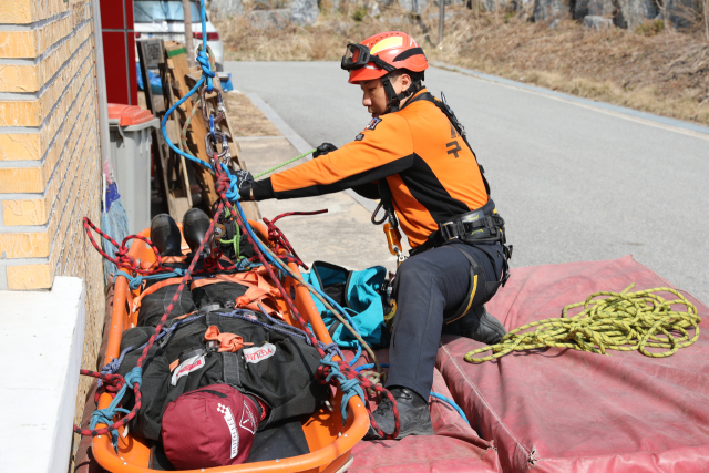 【양구】양구소방서는 24일 본서 후정 로프훈련장에서 2026년 강원소방기술경연대회 출전을 앞두고 응용구조팀 시연회를 개최했다.