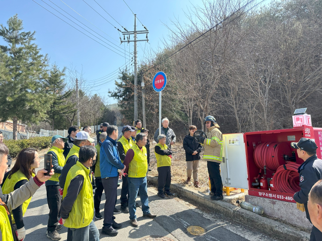 양구소방서(서장:권혁범)는 25일 양구비상소화장치함 010호(사랑의집 인근)에서 양구읍 이장협의회 회원 39명을 대상으로 비상소화장치함 사용법 교육을 실시했다.