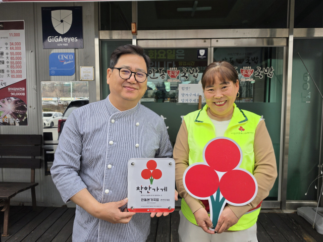 강원사회복지공동모금회가 25일 안동본가국밥 춘천퇴계점에 착한가게 제1586호점 현판을 전달했다.