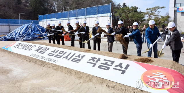 춘천MBC 복합 상업시설 착공식이 25일 삼천동 부지에서 최헌영 사장, 백승호 노동조합 지부장, 이영수 사우회 회장을 비롯한 직원들과 박진오 강원일보 사장 및 내빈들이 참석한 가운데 열렸다.