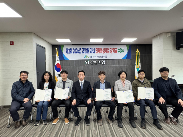 강릉시산림조합(조합장:이대용)은 26일 시산림조합 회의실에서 조합원 자녀 우수 대학생 9명을 선발해 각 100만원씩 모두 900만원의 장학금을 전달했다. 강릉시산림조합은 산림조합경영 수익금을 조합원에 환원하는 차원에서 2025년부터 장학생선발심의 위원회를 구성해 조합원 자녀 중 우수대학생을 선발, 인재를 양성하기 위해 장학금을 지급하고 있다.