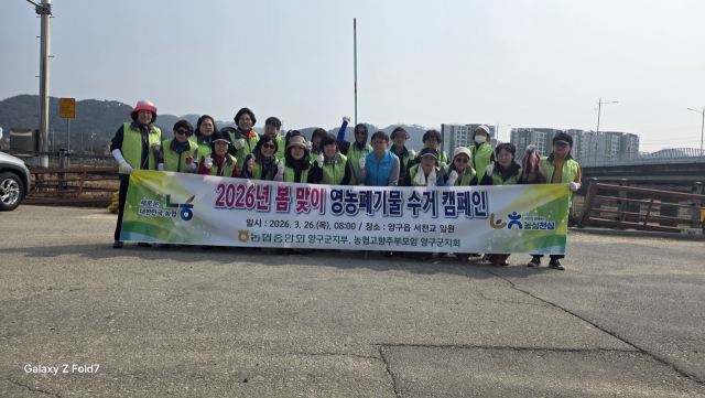NH농협 양구군지부(지부장:우일권)는 26일 농협고향주부모임(회장:이옥순) 회원 20여명과 함께 양구읍 서천교 일원에서 봄맞이 영농폐기물 수거 등 환경정화 캠페인을 실시했다. 이번 캠페인은 농심천심 운동이 일환으로 '농촌공간 재생 및 환경 전화 실시를 통한 지역 참여의식 고취'를 위해 마련됐다.
