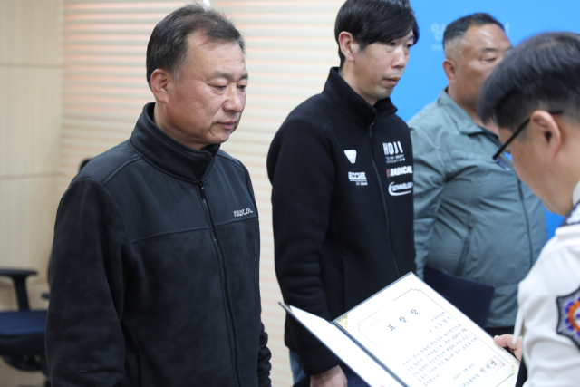 지난 12일 발생한 사고 당시 현장에서 적극적으로 협조하며 실종자 수색에 기여한 유공자들의 공로를 격려하고 감사의 뜻을 전하기 위해서다. 유공자는 진목어업계 소속 이광배 계장, 임영빈 계원, 김용선 계원 총 3명이다.
