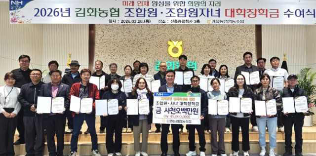 【철원】철원 김화농협이 26일 김화농협 종합청사 3층에서 '2026년 조합원 자녀 대학장학금 수여식'을 열었다. 김화농협은 이날 조합원 자녀 대학생 30명에게 각각 150만원씩 총 4,500만원의 장학금을 전달했다.
