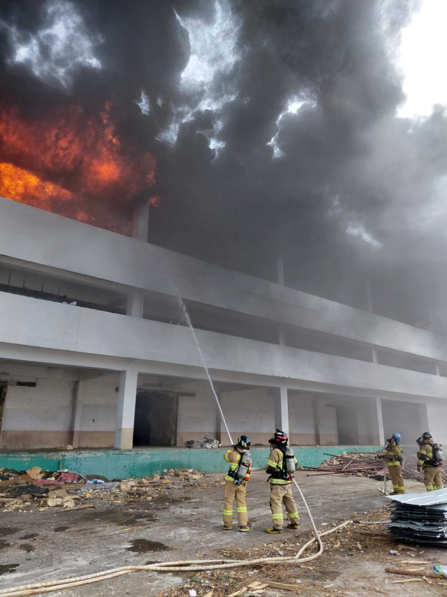 불이 나자 작업중이던 인부들은 신속히 대피, 인명피해는 없었다.