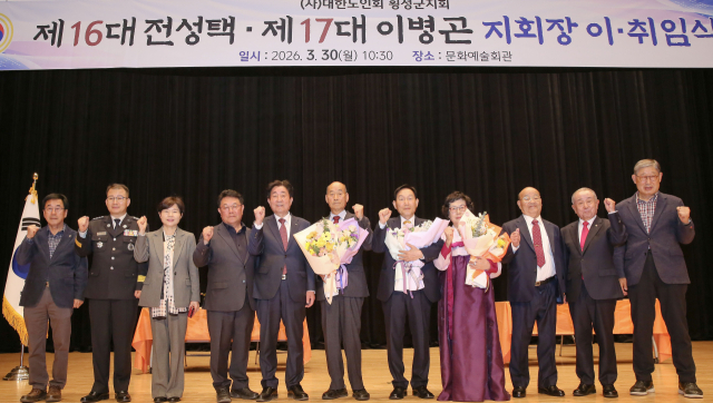 ◇대한노인회 횡성군지회장 이·취임식이 30일 횡성문화예술회괸애서 김명기 횡성군수, 이건실 대한노인회 도연합회장 등 기관단체장과 회원들이 참석한 가운데 열려 제16대 전성택 회장이 이임하고 제17대 이병곤 회장 취임했다.