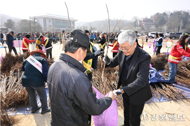 [2026 희망의 나무나눠주기] "시민들이 심은 나무로 정원도시 춘천 더 푸르게"…구름 인파 몰리며 대성황