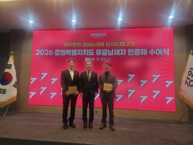 장석철(68) ㈜에이펙스도시개발 대표가 유공납세자로 선정, 지난 27일 춘천 스카이컨벤션웨딩홀에서 열린 강원특별자치도 ‘2026년 지방세 유공납세자 인증패 수여식’에서 인증패를 받았다.