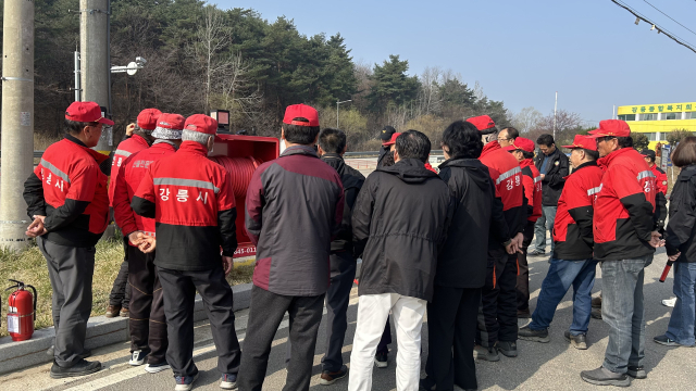 강릉시 강동면은 지난 27일 면사무소 앞에서 이장 및 산불감시원, 주민 등 50여명이 참여한 가운데 비상소화장치 자체교육을 진행했다.