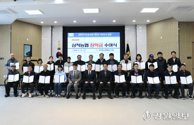 삼척농협(조합장:이규정)은 지난 27일 삼척농협 이사부지점 대회의실에서 조합원 자녀 38명에게 1인당 100만원씩 총 3,800만원의 장학금을 전달했다.