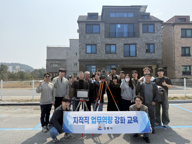 강릉시는 지난 27일 유천동 일원에서 지적직 공무원 21명을 대상으로 현장 실무능력 배양을 위한 ‘2026 기술직 역량강화 지적측량 실습 교육’을 실시했다.
