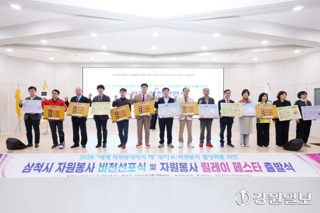 삼척시 자원봉사 비전선포식 및 자원봉사 릴레이 페스타 출발식이 지난 31일 시청 대회의실에서 박상수 시장, 권정복 시의장과 사회단체장, 자원봉사자 등이 참석한 가운데 열렸다.