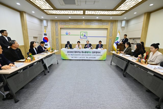 【속초】속초시는 1일 시청 상황실에서 속초양양교육지원청, 한국기후변화연구원, 속초시기후환경네트워크와 함께 ‘찾아가는 탄소중립학교’ 운영을 위한 업무협약을 체결했다.