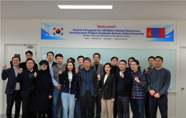 한라대는 최근 대학에서 몽골 울란바토르시, 몽골과학기술대 간 ‘UB Metro 인력양성 프로젝트’의 일환으로 몽골 대학원생 입학 환영식을 개최했다. 7명의 몽골 학생이 한라대 대학원 석사과정에 입학했으며 전공은 철도운영관제시스템, 철도건설공학, 철도전기신호공학, 철도기계차량공학 등이다.