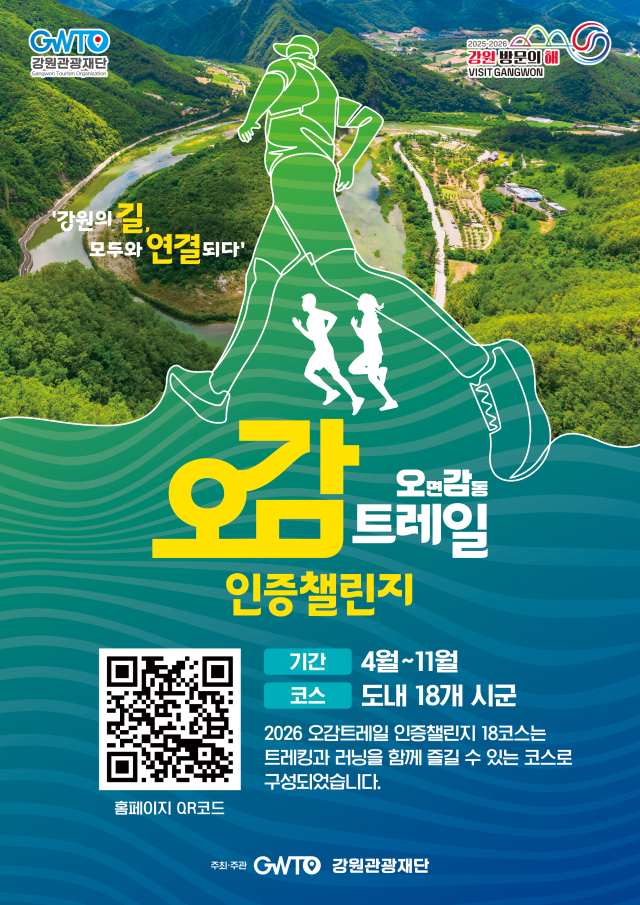 ‘2026년 오감트레일’ 참여 방법은 강원관광재단 공식 사회관계서비스망(SNS·인스타그램) 및 행사 공식 누리집(fivesensestrail.com)에서 확인할 수 있다.