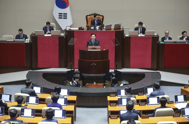 이 대통령은 이날 국회 본회의장에서 정부가 제출한 26조 2천억원 규모의 추가경정예산안 처리 협조를 위한 시정연설을 갖고 "중동 전쟁이 야기한 중차대한 위기 앞에 국민의 삶과 경제를 지켜야 한다는 절박한 심정으로 이 자리에 섰다"며 이같이 말했다.