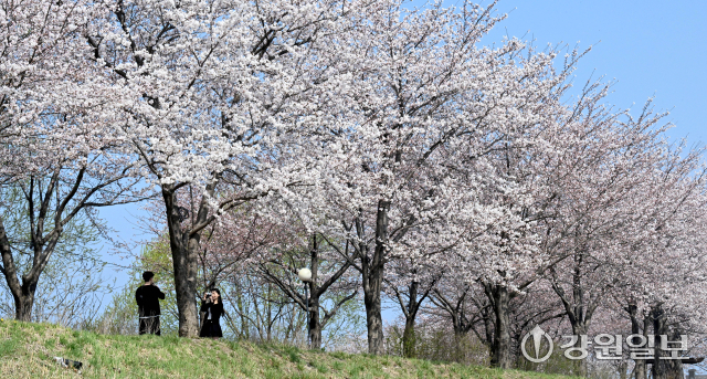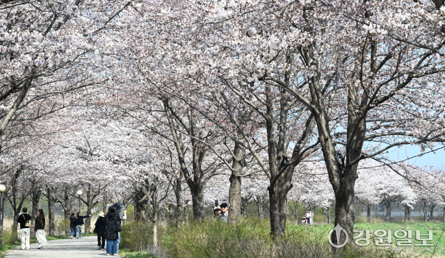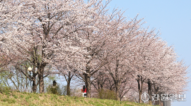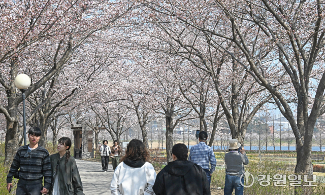 봄기운이 완연한 2일 강릉시 경포호에 벚꽃이 개화를 시작해 시민들의 눈길을 사로잡고 있다. 강릉의 3색 벚꽃축제인 경포벚꽃축제는 오는 4월4일부터 11일까지, 남산벚꽃축제, 솔올블라썸이 4월 3일부터 5일까지 열린다. 강릉=권태명기자