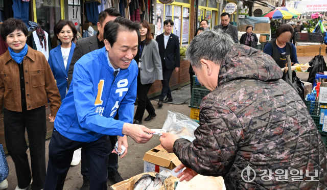 더불어민주당 우상호 강원지사 예비후보가 2일 장날을 맞은 춘천 풍물시장을 찾아 고유가와 물가 상승으로 어려움을 겪는 도민들의 목소리를 직접 들었다.