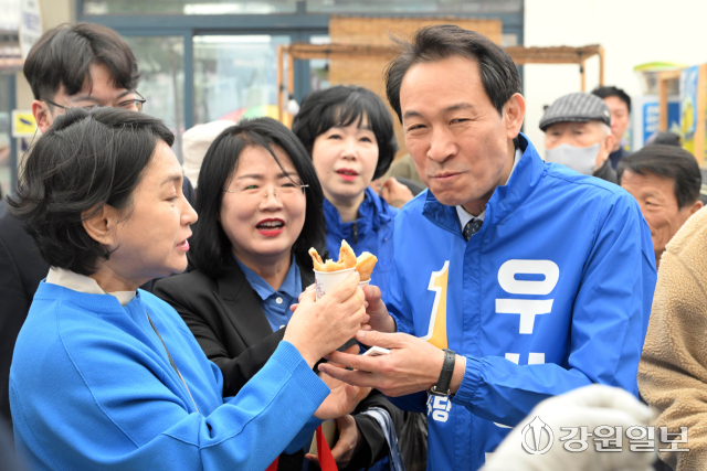 이날 우 후보는 “중동전쟁발 에너지위기와 고유가, 물가 상승으로 지역 경제와 서민들이 많은 어려움을 겪고 있다. 지역사랑상품권으로 장 보면서 상인들에게 조금이나마 도움이 되고자 시장에 왔다”고 말했다. 또 “정부 추경안에 포함된 고유가 피해 지원금이 지역사랑상품권과 연계돼 지급된다. 지역사랑상품권을 쓰는 것이 위축된 지역 경제 활성화에 많은 도움이 되기 때문에, 춘천에 오시면 꼭 춘천사랑상품권을 써주시길 부탁드린다”고 했다.