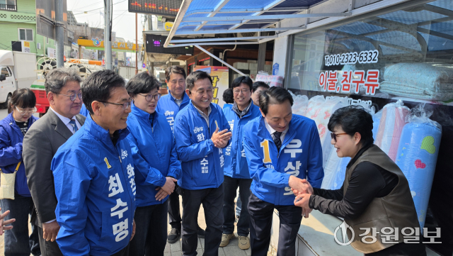 ◇우상호 더불어민주당 강원특별자치도지사 예비후보가 3일 화천읍 재래시장과 전통시장(5일장) 현장을 방문해 상인들과 주민들의 목소리를 청취했다. 이번 방문에는 같은 당의 김세훈·최수명 화천군수 예비후보를 비롯한 광역의원 기초의원 예비후보와 유정배 춘천철원화천양구을 지역위원장 등이 동행했다. 화천=이무헌기자