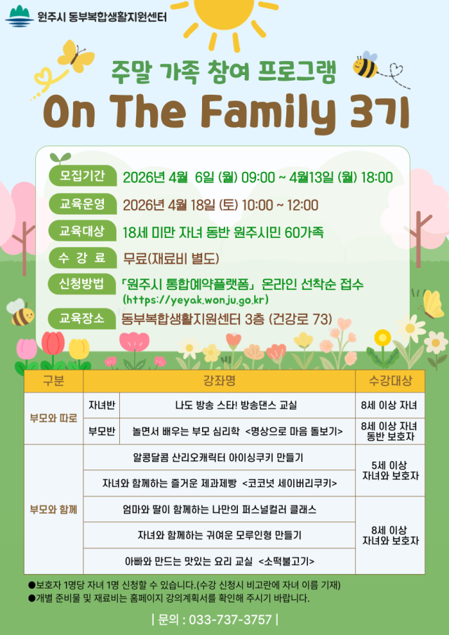 【원주】원주시 동부복합생활지원센터가 오는 18일 주말 가족 참여 프로그램 ‘온 더 패밀리(On The Family)’ 3기 과정을 운영한다.