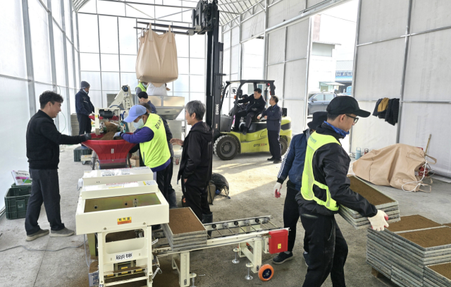 김화농협은 3일 김화농협 미곡처리장에서 첫 모판 파종 작업을 진행하고 신청 농업인들에게 공급을 시작했다. 이날 작업에는 공공형 계절근로자들이 함께 참여해 신청 일정에 맞춰 신속하게 파종이 이뤄졌다.