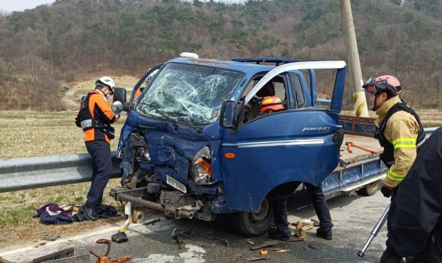 3일 오후 1시28분께 원주시 부론면 손곡리 왕복 1차선 도로에서 50대 A씨가 몰던 1톤 트럭이 반대 차선에서 달리던 덤프트럭과 충돌했다. 이 사고로 A씨와 동승자인 50대 여성 B씨가 다쳐 병원으로 옮겨졌다. 경찰은 정확한 사고 원인을 조사 중이다.